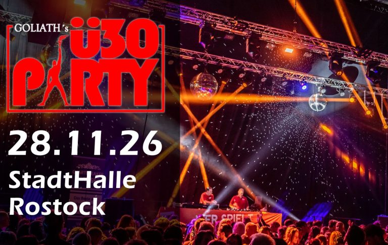 Auch Goliaths legendäre Ü30 Party lockt zwei Mal im Jahr tausende Besucher in die StadtHalle Rostock und ist zu einem der Party-Highlights der Stadt geworden.